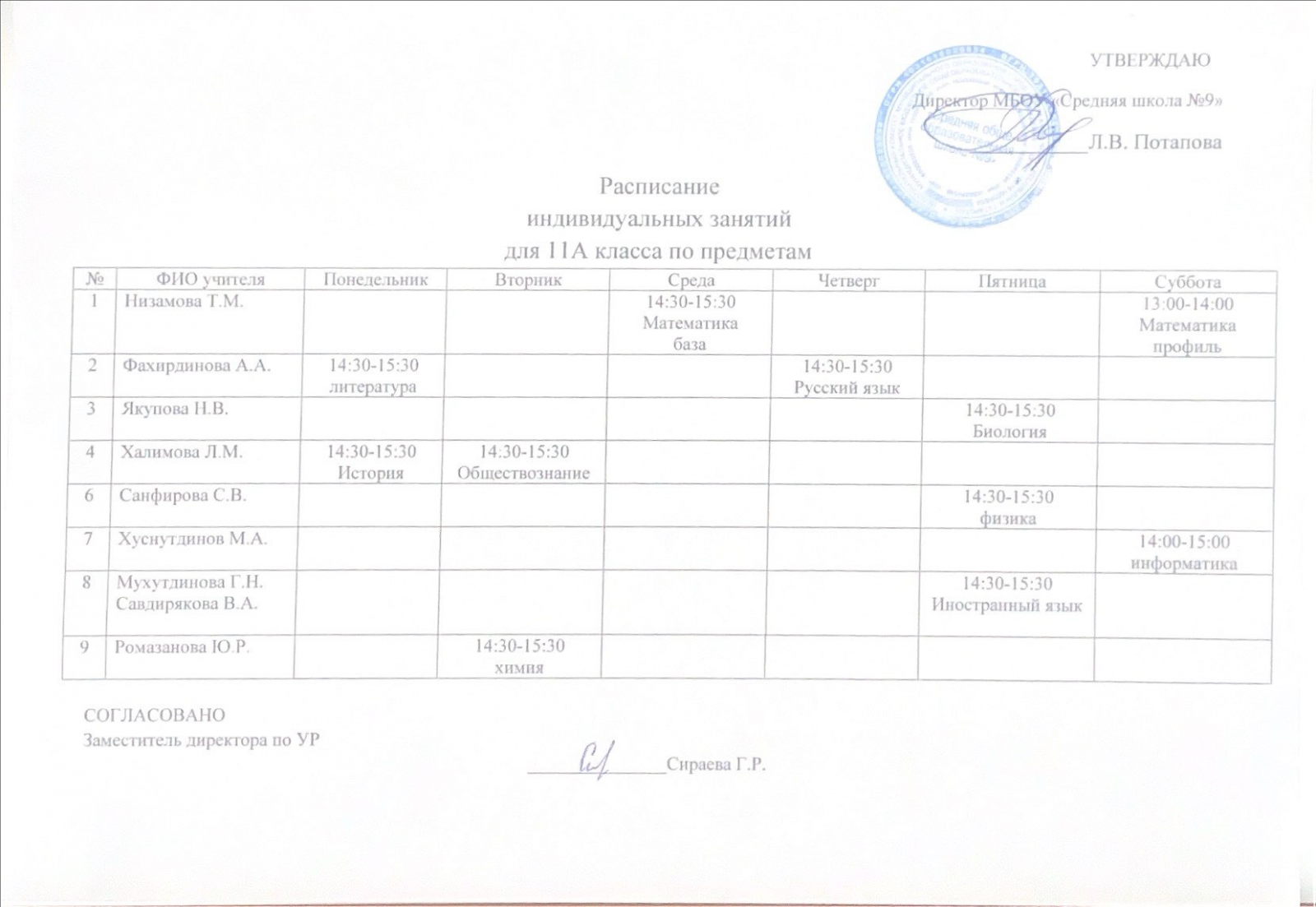 Расписание занятий по подготовке к ЕГЭ (11 класс).