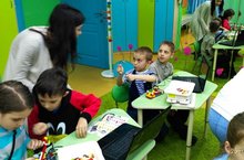 Учащиеся школы на каникулах посетили творческие мастерские, где первоклассники смастерили поздравительные открытки на праздник 9 мая, для ветеранов ВОВ.