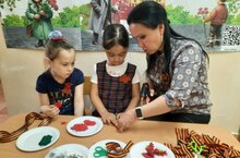 По сложившейся доброй традиции в предверии Дня Победы педагоги старшей группы со своими воспитанниками изготавливают бутоньерки Победы. Дошкольники с большой заинтересованностью украшают георгиевскую ленточку гвоздиками. У ребят получились праздничные красивые бутоньерки, которые они раздадут жителям села.