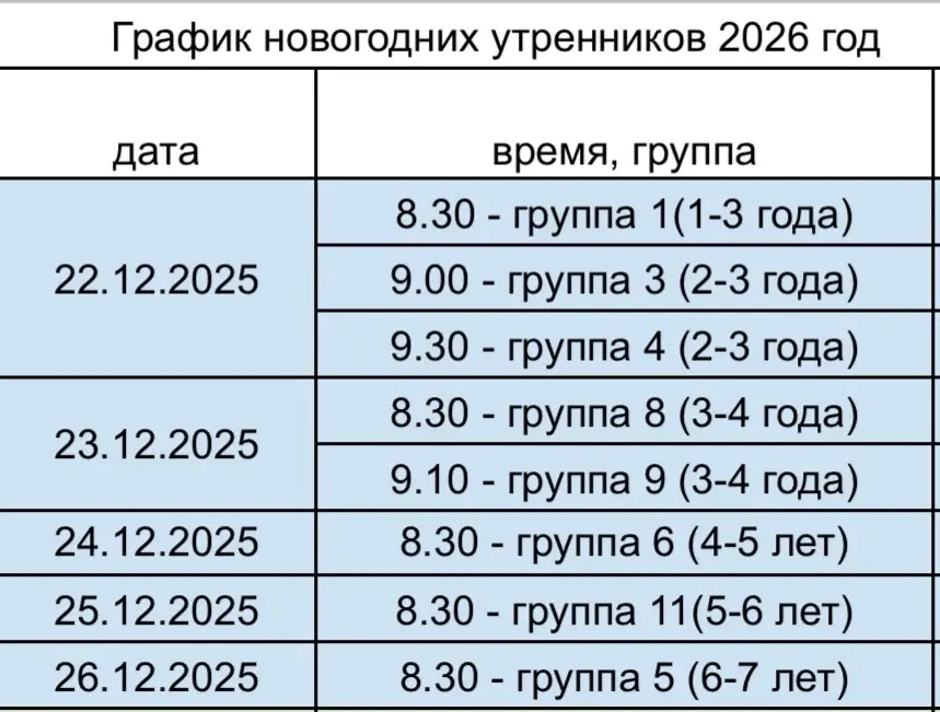 Уважаемые родители ! Можете ознакомиться с графиком новогодних утренников!