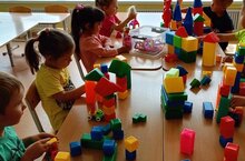 Сегодня дети группы младшего возраста побывали в "Городе мастеров", где расширили знания о профессии строитель. Дети узнали, какую работу выполняют люди этой профессии, какие используют инструменты. Во время игр со строительным Лего-материалом ребята учились сооружать постройки по образцу. А также узнали о том, как важно строителям качественно выполнять свою работу .