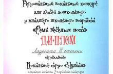 Сегодня вокальный ансамбль "Чулпан" стал Лауреатом III степени в региональном вокальном конкурсе для детей дошкольного и младшего возраста "Семь веселых нот" под руководством музыкального руководителя Романовой Людмилы Робертовны.