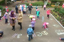 1 сентября провели конкурс рисунков на асфальте «День Знаний». Дети рисовали свои будущие школы, классы и учителей.