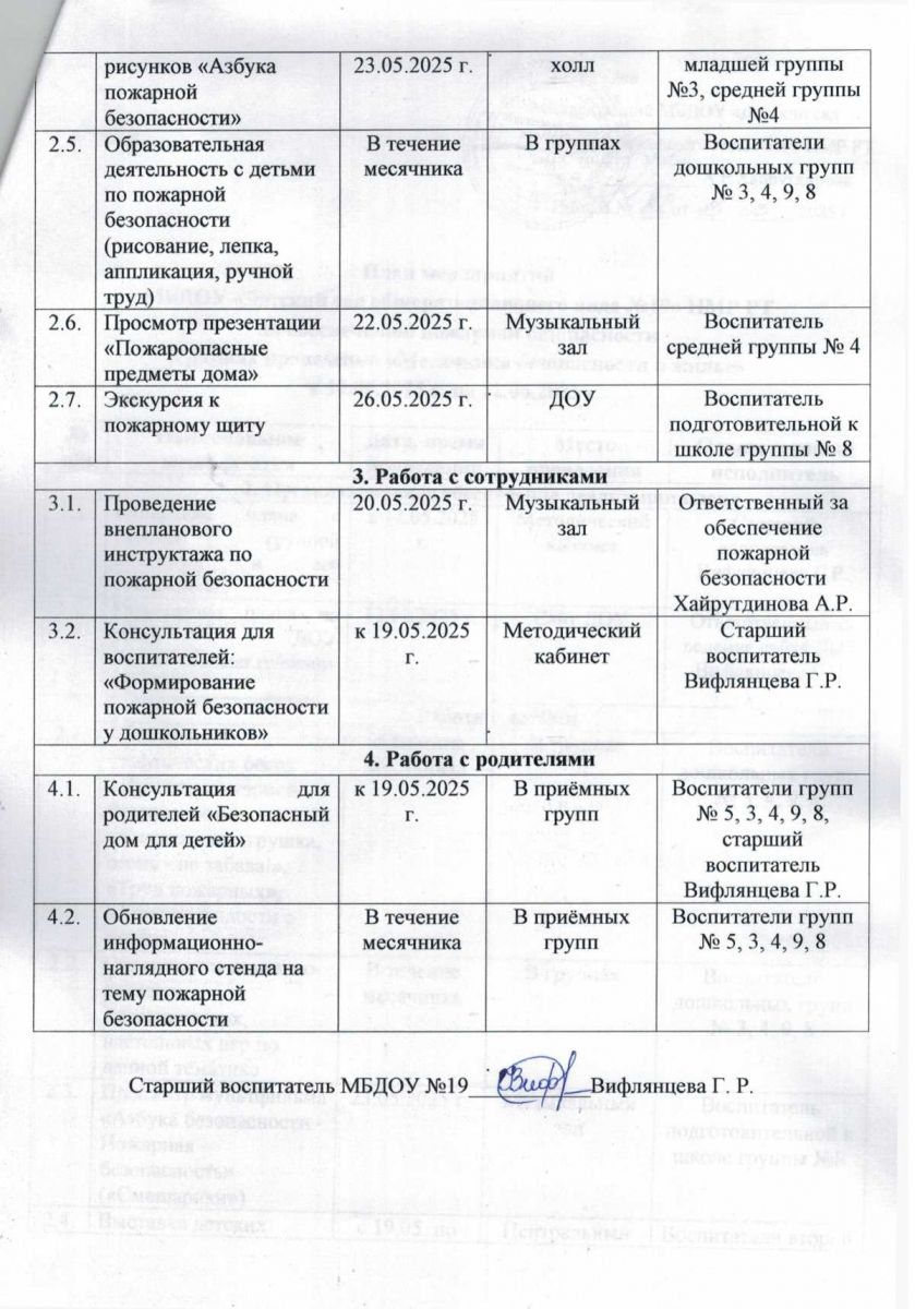 План мероприятий по обеспечению пожарной безопасности в рамках проведения "Месячника безопасности в жилье" с 12.05.2025 г. по 12.06.2025 г.
