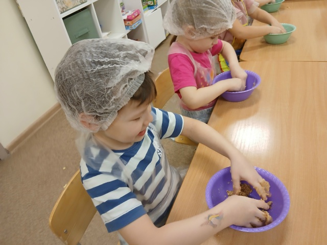 В приготовлении были простые ингредиенты - печенье, сгущеное молоко, какао, масло. Изготовление пирожного вызвало у детей бурю эмоций, каждому с нетерпением хотелось попробовать поучаствовать в кулинарном процессе. А как интересно было им увидеть конечный результат своего труда - настоящее пирожное с ароматным запахом!