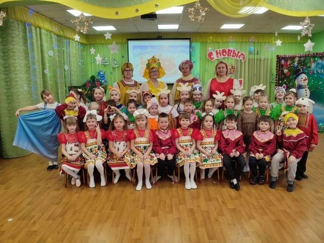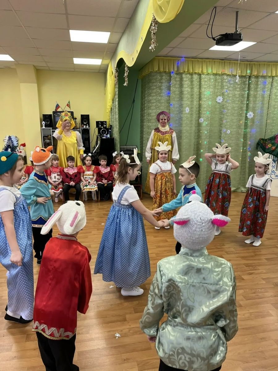 Как известно, с 7 по 19 января празднуются рождественские Святки - Колядки. И в нашем детском саду ежегодно ребята в музыкальном зале встречаются с народными традициями России, с её национальной культурой на развлечении "Колядки", где они весело исполняют обрядовые и календарные песни, играют и даже гадают, вытаскивая из волшебного мешочка предмет, который расскажет им о будущем. Завершается всё, как всегда - угощением. Дети все - в народных костюмах и масках, как и полагалось издревле в народных праздниках нашего народа.