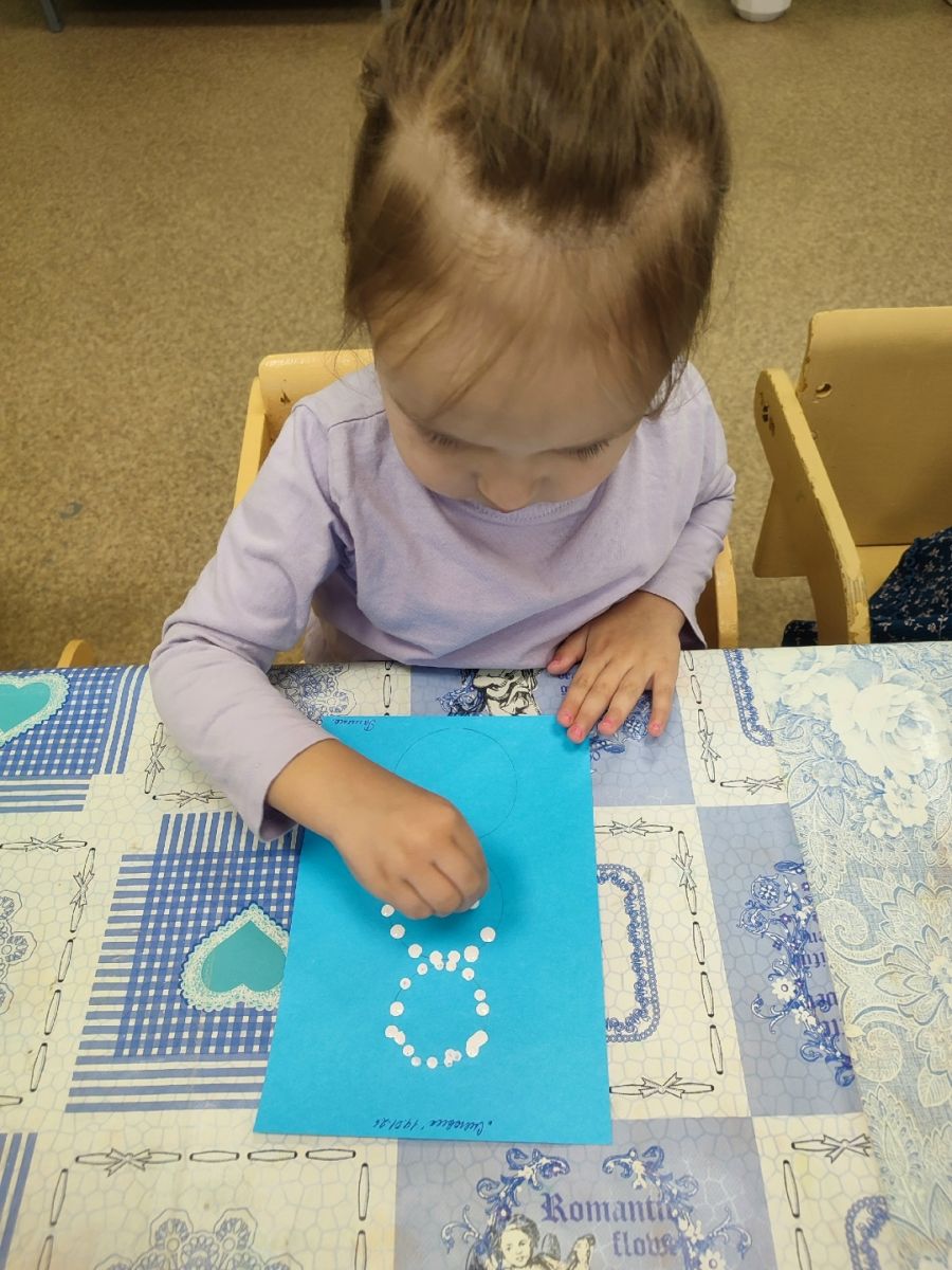 Вот и ребята из второй младшей группы №10 во время кружка нетрадиционного рисования нарисовали снеговика необычным способом, при помощи ватной палочки.