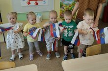 В преддверии праздника День государственного флага России , ребята младшей группы №2 "Пчёлки", познакомились с флагом России, его основными цветами, рисовали его нетрадиционным способом - ладошками.