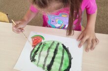 Цель: обобщить и расширить знания детей об арбузе (форма, размер цвет), способствовать развитию творческого воображения, любознательности, развитию мелкой моторики рук.
