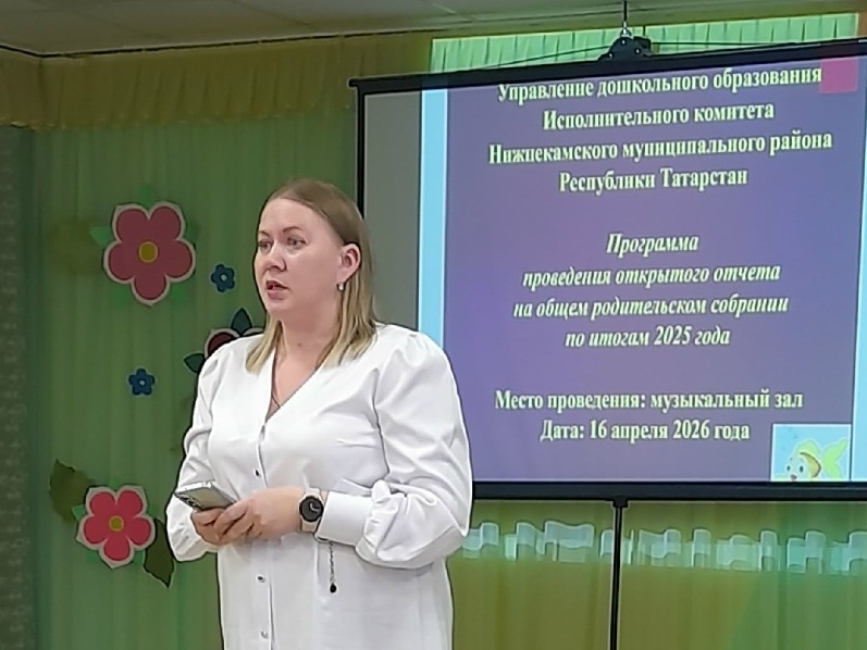 На общем родительском собрании заведующий МАДОУ №2 Гареева Д.Ш. проанализировала административную работу, оказание дополнительных образовательных услуг, финансовую деятельность. Подвела итоги 2025 года: по итогам приемки ДОУ, рейтингу, аттестации, участию в конкурсах на различных уровнях.