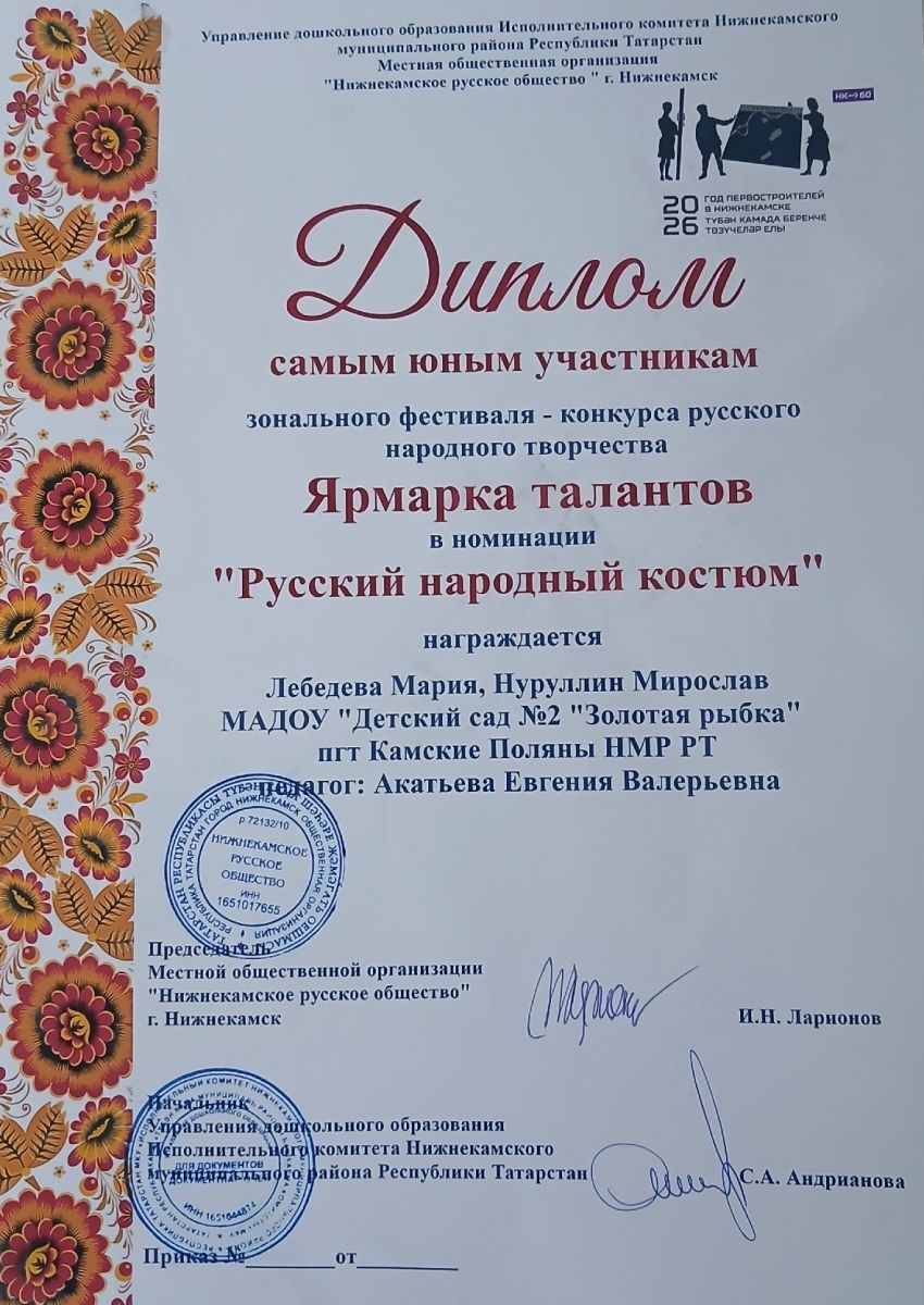 Наши воспитанники первой младшей группы №4 "Подсолнушки" Лебедева Мария и Нуруллин Мирослав участвовали в зональном фестивале-конкурсе русского народного творчества.