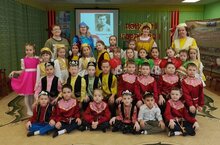 В нашем детском саду прошло мероприятие, посвященное творчеству поэта-героя Мусы Джалиля. В мероприятии приняли участие воспитанники подготовительных к школе групп №5 и №10, старшей группы №6. Воспитатель по обучению детей татарскому языку Закирова Лилия Раисовна, воспитатели групп: Ваняшина Венера Альбертовна, Енизеркина Любовь Николаевна, музыкальный руководитель Спиридонова Разия Хакимовна. Лилия Раисовна рассказала об интересных фактах из жизни поэта, его непростой биографии, о его творчестве, просматривались презентации и чтения детьми стихотворений «Красная ромашка», «Любимый пёс», "Вороватый котенок", "Этэч", " Клятва", "Случай в подьезде", "Колыбельная для дочери", "Сагат". Дети пели песни на татарском языке "Күрсэт эле... ", дети старшей группы исполнили песни "Безнең киемнэр", играли в игру Түбэтэй".