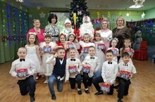 Самые маленькие ребятишки (1-2 года) в первый раз очутились в атмосфере новогоднего чуда и веселья. Пели, плясали и играли вместе со Снегурочкой. И подарки не заставили долго себя ждать.