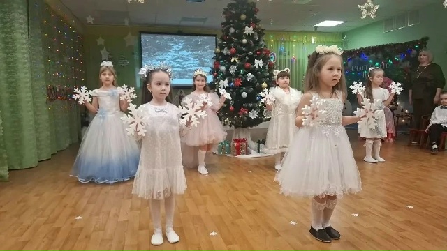 Ребята из подготовительной группы №6 радовали на новогоднем празднике не только своих родителей, но и педагогов. Они помогли Деду Морозу и Снегурочке стать самими собой, ведь нежданная гостья Хлопушка - вреднушка превратила их в Деда - Жару и Цыганку. Девочки исполнили танец снежинок, чтобы Снегурочка вспомнила, кто она есть на самом деле. А найти подарки Деду Морозу помогли мальчики - Сыщики с помощью луп и своего оригинального танца.