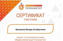 Педагоги Гареева Д.Ш., Волкова С.Г., Ваняшина В.А., Акатьева Е.В., Торопова Е.Н., Трифонова Н.В., Сафина О.А., Царева Т.Н., Закирова Л.Р., Муравьева С.А., Романова О.Е., Енизеркина Л.Н., Беляева Е.И., Гребнева И.Г., Исхакова Ф.Я. прошли тестирование в рамках Общероссийской акции Тотальный тест "Доступная среда" 2022 03.12.2022