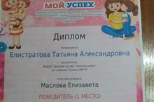 Всероссийский конкурс «Мой успех». Приняли участие воспитанники подготовительной к школе группы №8 и воспитатели: Лаврентьева Екатерина и Гребнева И.Г. - Диплом победителя (1 место) в номинации: Мамин день! (конкурс поделок); Жукова Екатерина и Сергеева Т.А. - Диплом победителя (1 место) в номинации: Мамин день! (конкурс поделок); Маслова Елизавета и Елистратова Т.А. - Диплом победителя (1 место) в номинации: Её величество Мама! (конкурс рисунков). 30.11.2020