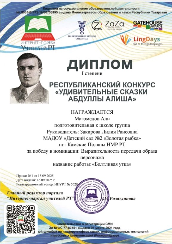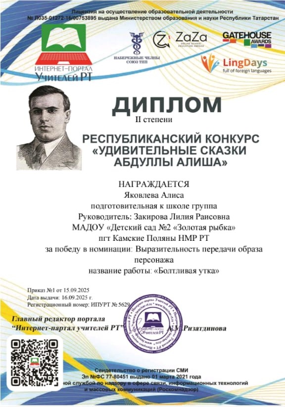 | Короткое название: | МАДОУ "Детский сад №2 "Золотая рыбка" пгт Камские Поляны НМР РТ |