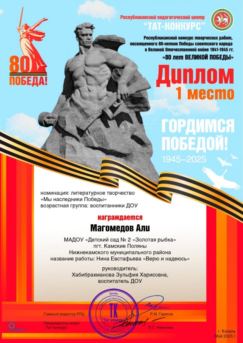 Муниципальное автономное дошкольное образовательное учреждение "Детский сад №2 "Золотая рыбка" пгт Камские Поляны Нижнекамского муниципального района Республики Татарстан