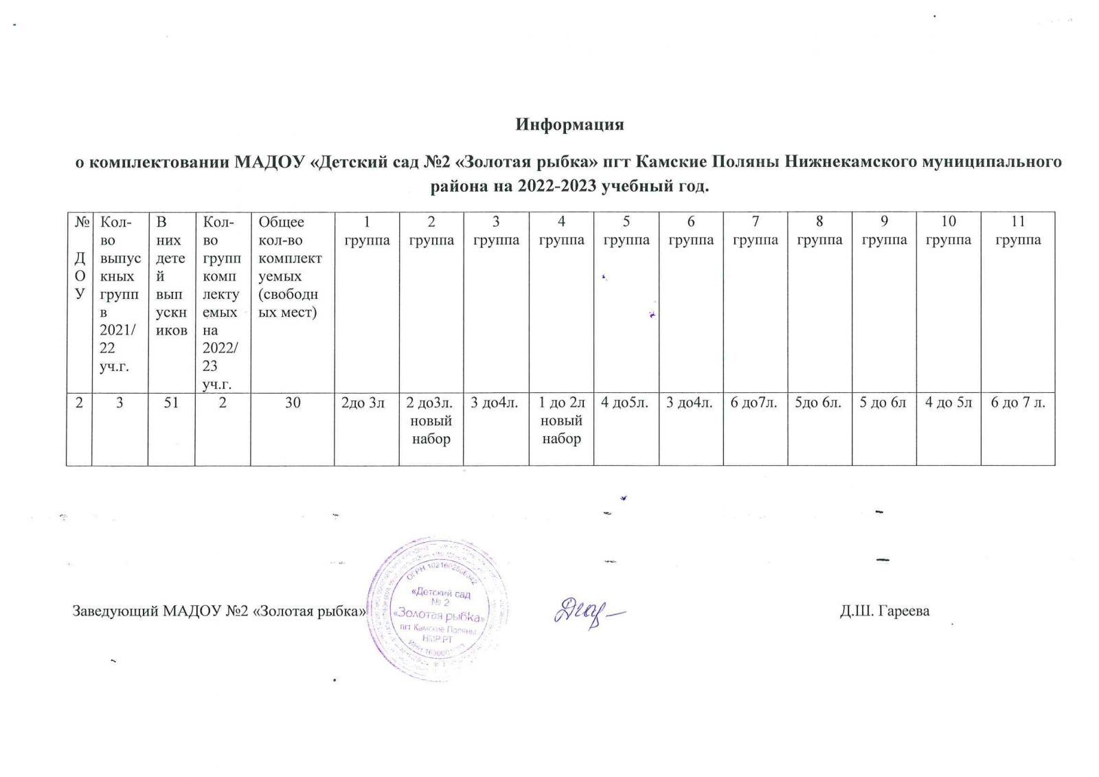 Комплектация групп 2022-2023 г.