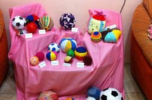 Организовали выставку мячей "Мой веселый звонкий мяч!", по проекту Малоземовой Анны Николаевны в детском саду на тему: "Эти разные мячи". По два мяча с группы, сделанные своими руками. 20.02.2015