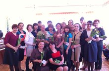 Коллеги, женщины, всех просим Отставить в сторону дела. Цветы мы всем вам преподносим, Как знак весеннего тепла. С восьмым вас марта поздравляем. 09.03.2015