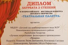Диплом лаурета 2 степени в конкурсе "Театральная палитра"