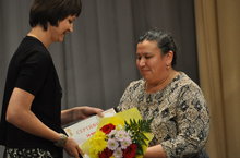 На конкурс посылаем фотографию, где нашей заведующей вручают сертификат и грамоту за призовое место в муниципальном конкурсе "Ана теле"