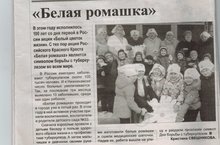 В последнем номере газеты "Нижнекамская правда" корреспондент Кристина Свешникова поместила статью "Белая ромашка", в которой рассказывает об акции, прошедшей в нашем саду. Читайте