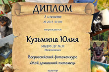 стали призерами Всероссийского конкурса "Мой домашний питомец".