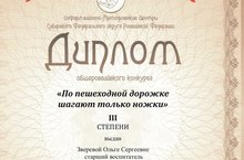 ⠠оздравляем старшего воспитателя Звереву О.С. с призовым местом во Всероссийском конкурсе по ПДД