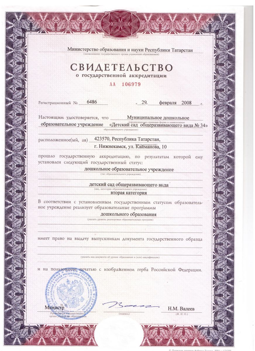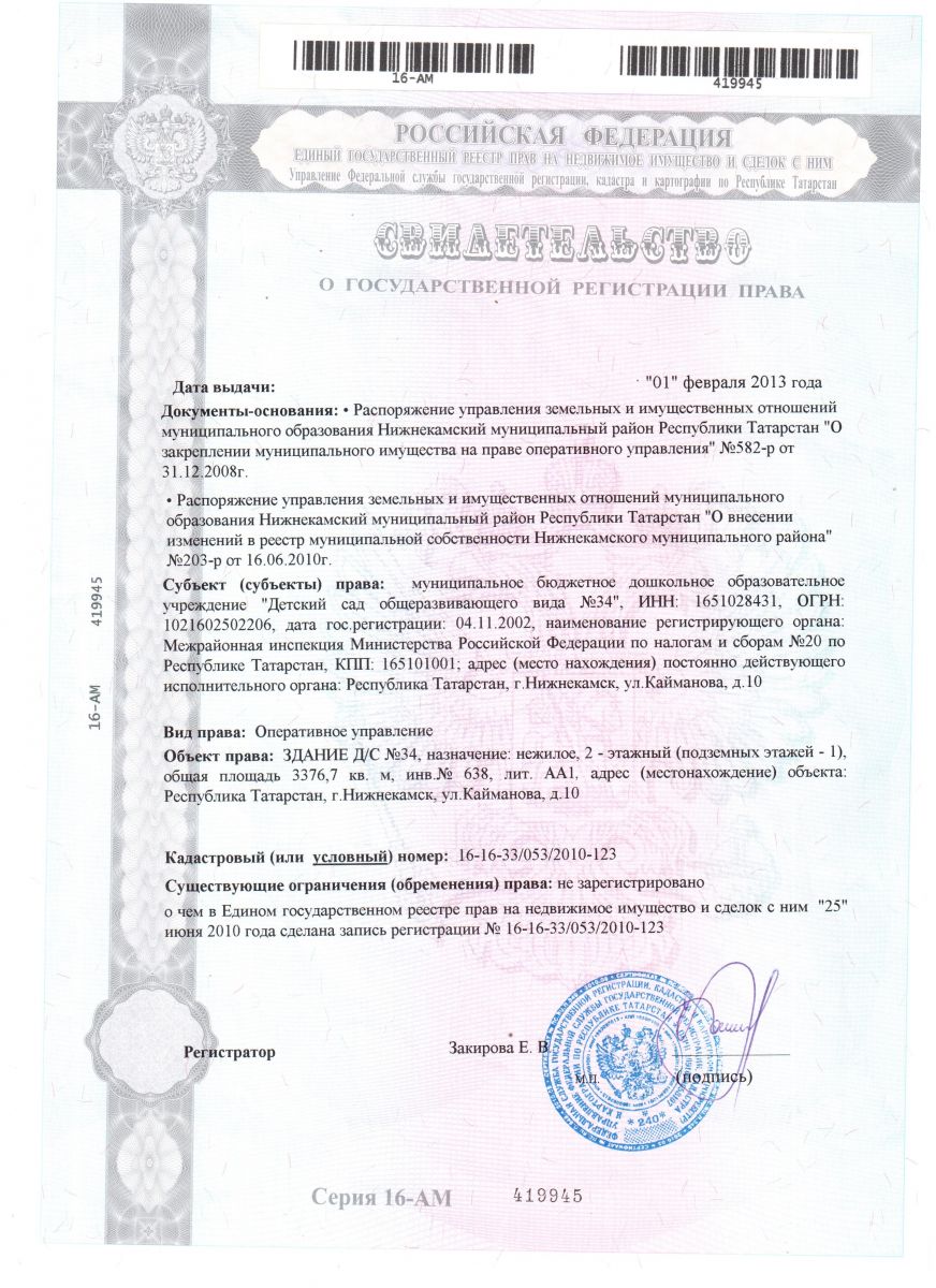 | Короткое название: | МБДОУ "Детский сад общеразвивающего вида №34"НМР РТ |