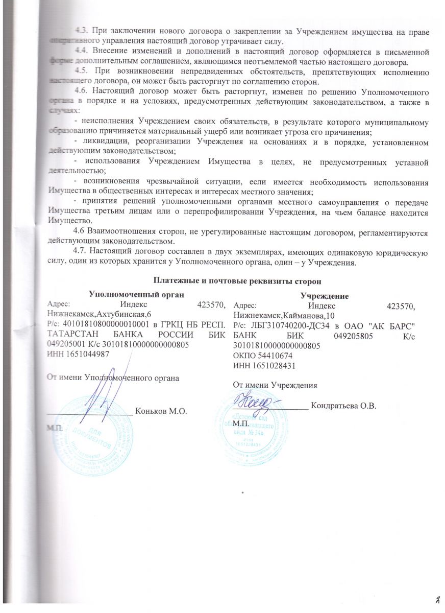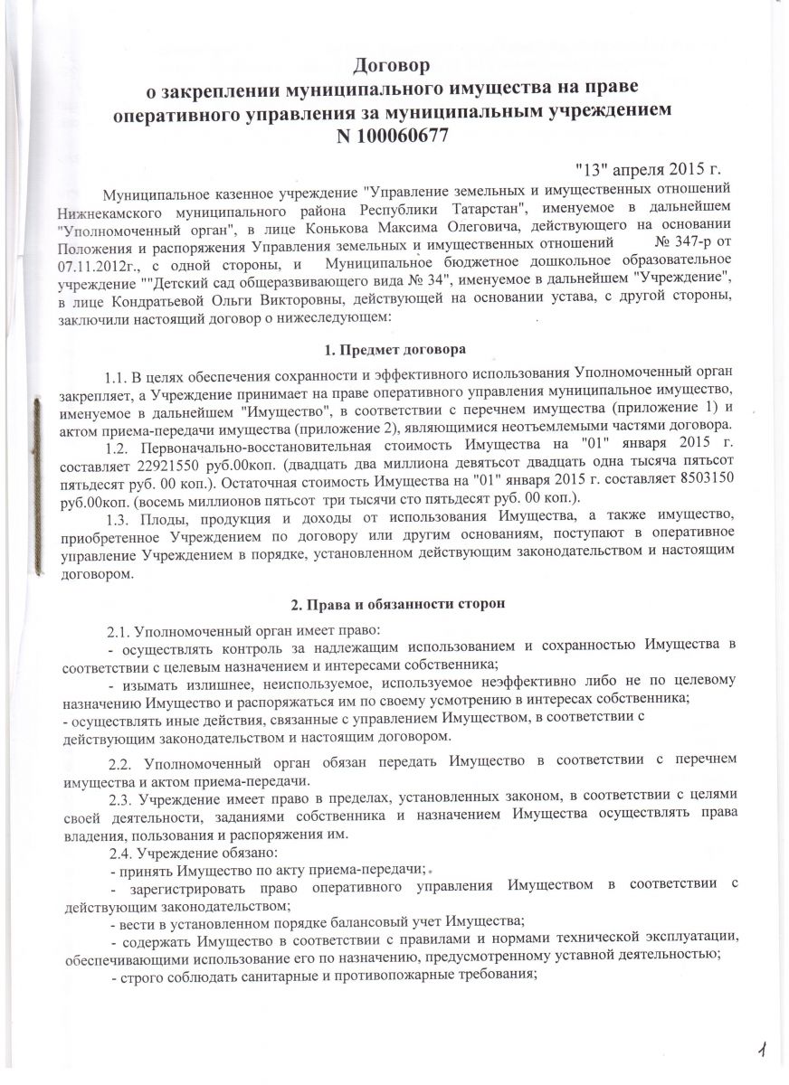 Договор о закрепление муниципального имущества на праве оперативного управления за муниципальным учреждением (Лист 2 , Лист 3 , Лист 4)