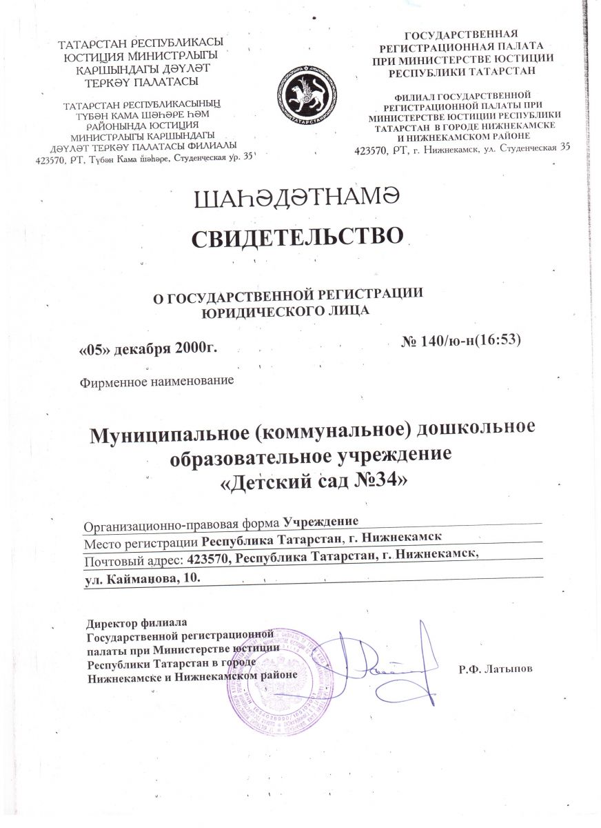МБОУ "Детский сад общеразвивающего вида №34" Нижнекамского муниципального района РТ (ликвидация с 30.03.2022)