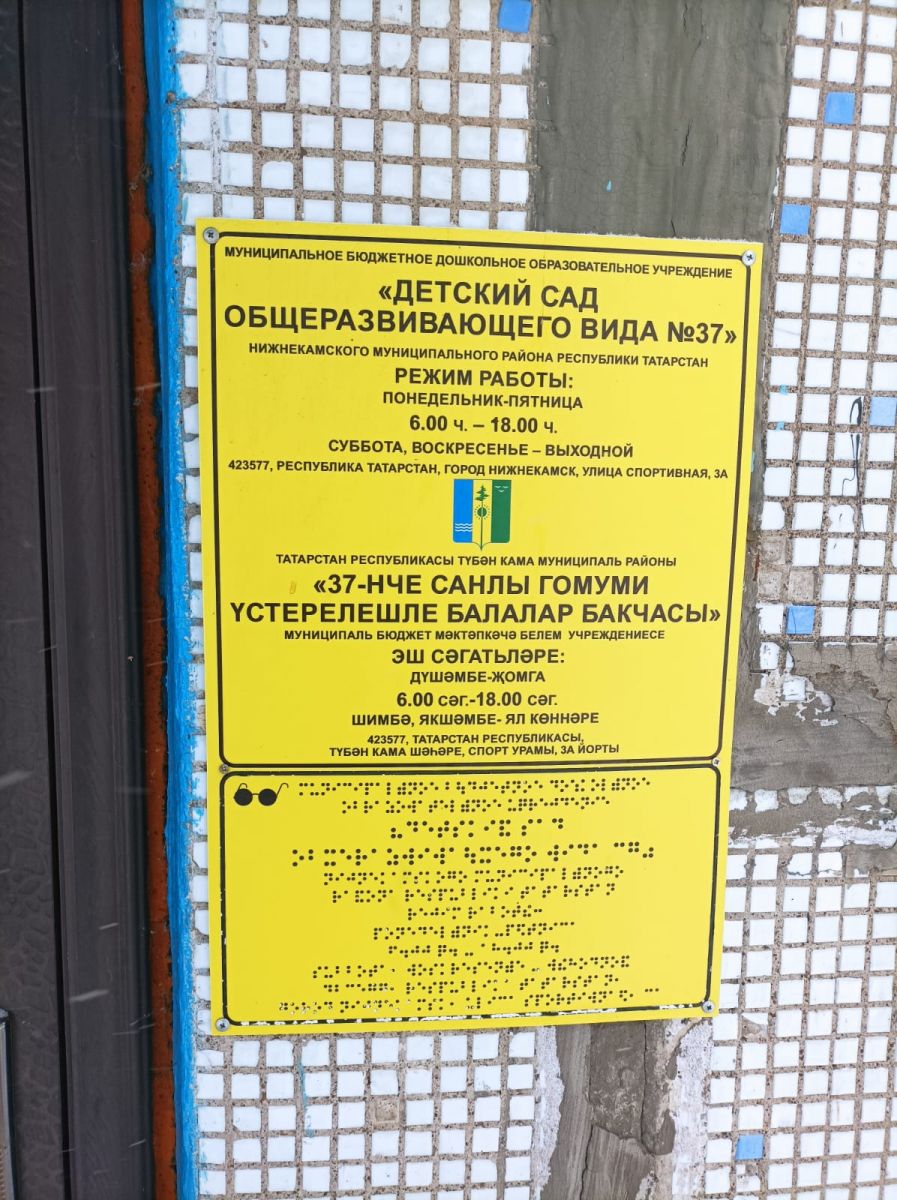 В соответствии с ФЗ № 419 от 01.12.2014 г. о создании безбарьерной среды, Приказом Минобрнауки РФ №1309 по созданию в каждой организации, осуществляющей образовательную деятельность безбарьерной среды для лиц с инвалидностью в МБДОУ "Детский сад общеразвивающего вида №37" НМР РТ проведены следующие виды работ: