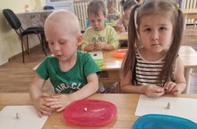 Ребята второй младшей группы № 9 на занятии лепили грибочки для белочки.