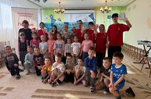 Яркий финал: в завершение активисты прикрепили малышам памятные значки с изображением Барсика — символа Движения Первых, олицетворяющего доброту, любознательность и активную жизненную позицию.
