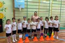 К деткам на занятие приходил кот Барсик. Они отправились на полянку мячей, где дети показали, как они умеют работать с мячом, чему они научились. Каждый ребёнок активно включался в работу, стараясь проявить себя, показать свой уровень знаний, умений и навыков.