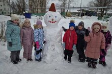 Получился весёлый и красивый снеговик, которого теперь можно увидеть прямо возле нашей детсадовской площадки. Все были довольны результатом своей совместной работы и даже захотели вернуться сюда завтра ещё раз поиграть и повеселиться!