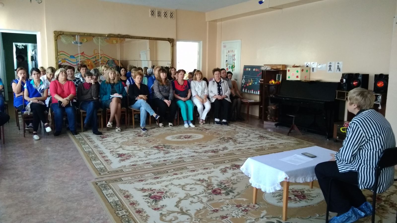 Опубликовано: 09.10.2018Сегодня в детском саду Титенок Луиза Наильевна, кандидат медицинских наук, врач высшей категории ФБУЗ «Центр гигиены и эпидемиологии в Республике Татарстан (Татарстан)» провела профессиональную гигиеническую подготовку. На обучении присутствовало около 60 сотрудников детского сада. Сотрудникам в конце мероприятия она предложила ознакомится с памятками (воспитателям, младшим воспитателям, поварам, кухонным работникам).