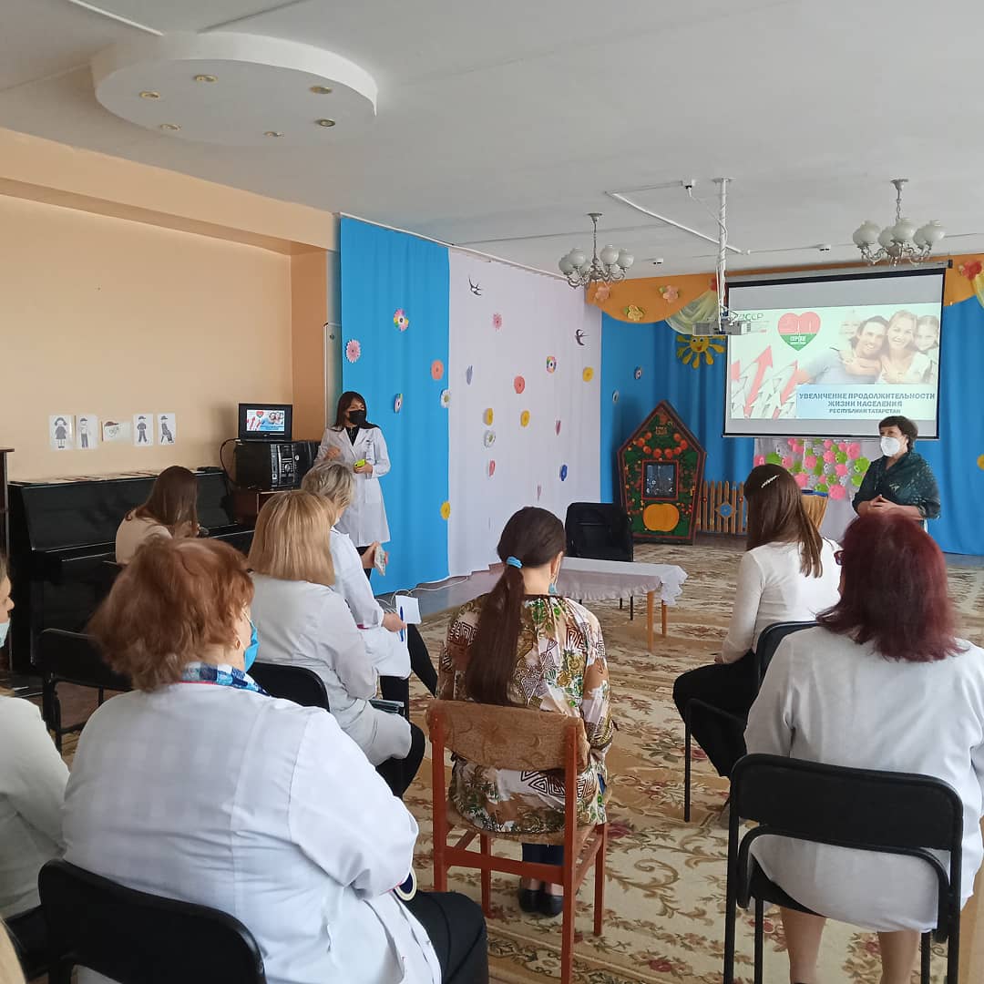 Опубликовано: 22.03.2021Сегодня с сотрудниками детского сада прошла лекция. Врач кардиолог НЦРМБ Бигашева Зульфира Ахатовна и медицинская сестра ГАУЗ ЦОЗиМП Мустафина Александра Вадимовна обсудили важнейшую тему сегодняшнего дня. Профилактика сердечно-сосудистых заболеваний и формирование здорового образа жизни. Раскрыли секреты правильного ведения ЗОЖ и физической активности, правильно питаться и отдыхать. При наличии сердечно-сосудистых заболеваний получать лечение у врача, а не заниматься самолечением. В конце встречи провели анкетирование и раздали буклеты. Фото 1, 2, 3, 4, 5, 6