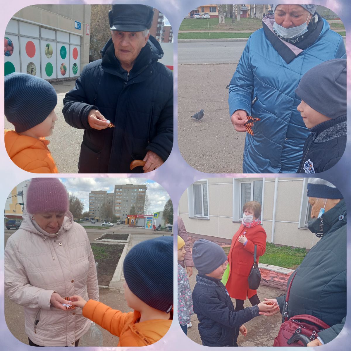 Опубликовано: 06.05.2022В преддверии Дня Победы по всей России проходит акция «Георгиевская ленточка», которая является символом памяти и уважения к подвигу. И мы с нашими воспитанниками дарили сегодня нижнекамцам бутоньерки, сделанные своими руками, поздравляли с наступающим праздником, а в ответ получали улыбки и слова благодарности.