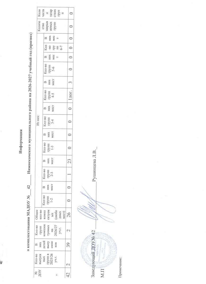Информация о комплектовании МАДОУ №42 на 2026-2027 уч.год (прогноз)