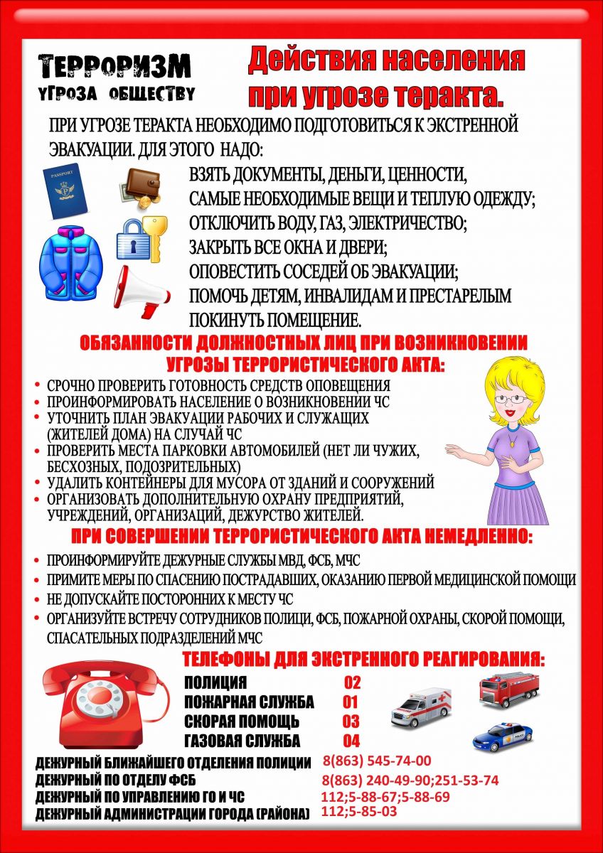 Памятка "Действие населения при угрозе терракта"