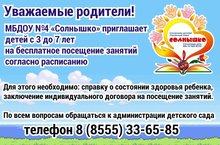 Муниципальное бюджетное дошкольное образовательное учреждение «Детский сад № 4 «Солнышко» пгт Камские Поляны Нижнекамского муниципального района Республики Татарстан - новости