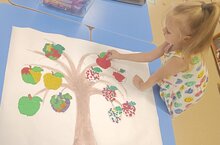 19 августа Россияне отмечают старинный народный праздник - Яблочный Спас. Это праздник урожая яблок, а также время, когда люди начинают готовиться к зиме, заготавливают различные сезонные продукты, такие как варенье и компот. Сегодня во всех возрастных группах прошли тематические мероприятия. Педагоги побеседовали с детьми о пользе яблок, о витаминах, которые содержатся в них. Дети средней возрастной группы сделали и раскрасили аппликацию из салфеток. Ребята второй младшей группы рисовали яблоки гуашью, а воспитанники старшей группы изготовили коллективную творческую работу в технике пластилинография.