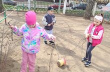 Весной, с установлением стабильно теплой погоды, территорию ДОУ приводят в порядок: убирают мусор с газонов и дорожек, вышедший из строя инвентарь.