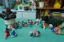Дети старшей группы № 8 в День "Деда Мороза и Снегурочки"слепили фигуры героев. Главные зимние герои получились разными и забавными. -