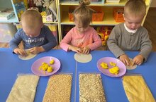 В группе раннего возраста прошёл замечательный и тематический день, посвящённый международному дню каши. В течение дня дети получили знания о пользе каши для здоровья. Дети познакомились с разными видами круп, сами приготовили кашу в процессе лепки. Во время игрового упражнения «Нарисуй на крупе» дети пальчиками рисовали узор.