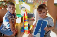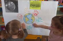 Педагогами с детьми дошкольных групп были проведены тематические занятия, в холле детского сада оформлена выставка поделок и рисунков, посвященных космической тематике.