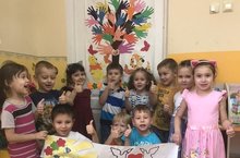 Аппликацию на тему "Дерево Добра" выполнили ребята совместно с воспитателями на Неделе Доброты.